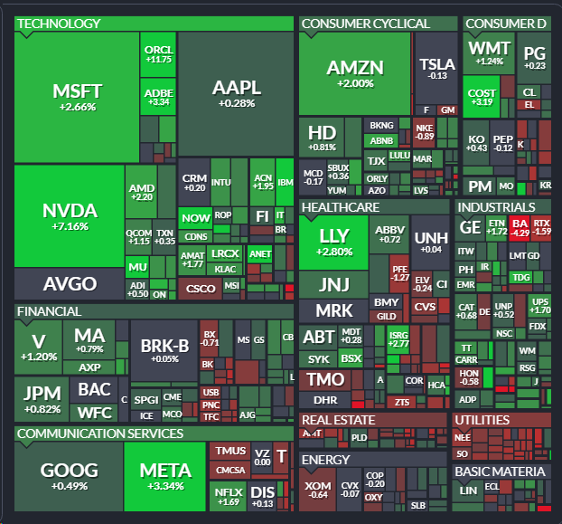 - 지수를 끌어 올린 것은 전일 부진했던 대형주들 엔비디아 7% 급등,