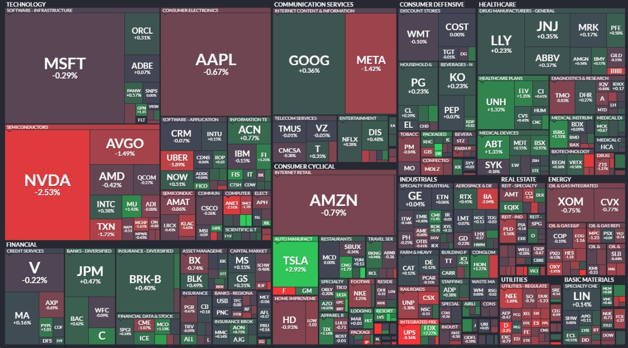- 엔비디아 -2.6%, 메타 -1% 이상 하락하며 지수에 영향