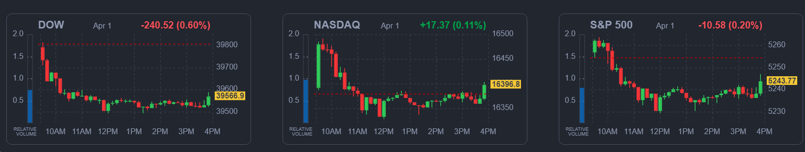 - 월요일 미국 증시는 예상보다 강한 제조업 데이터로 인해 국채 수익률이 상승한 후 연준의 6월 금리 인하 전망이 약화되면서 전반적인 하락세를 시현함.
