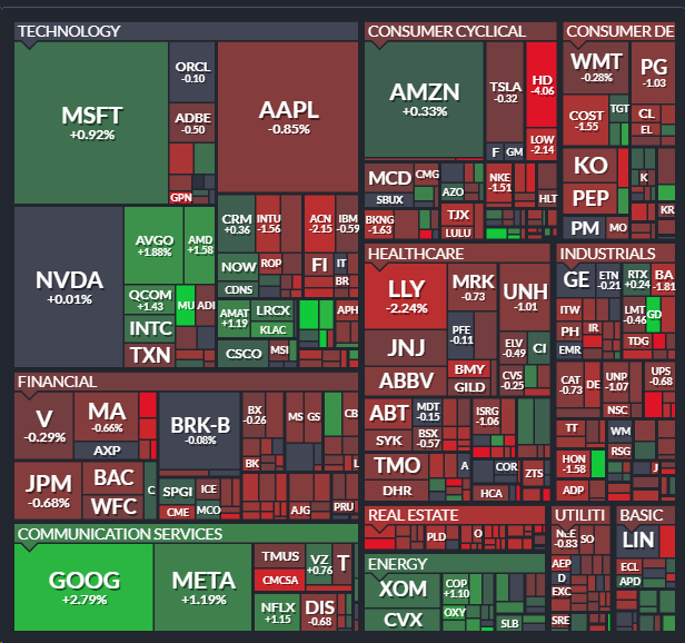 - 다우 지수와 S&P500은 하락했으며 나스닥은 소폭 상승하여 장을 마감함. -