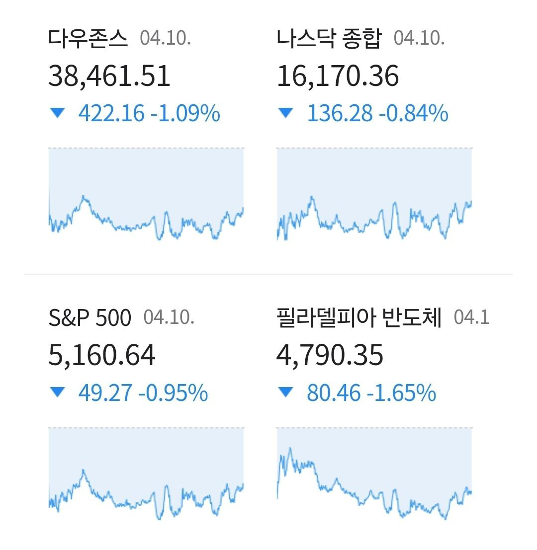 - 3월 CPI예상치 상회하며 국채금리 상승으로 3대지수 하락마감(04/10/24) -