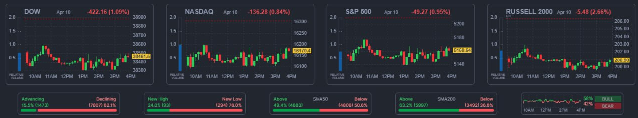 - 3월 CPI예상치 상회하며 국채금리 상승으로 3대지수 하락마감(04/10/24) -