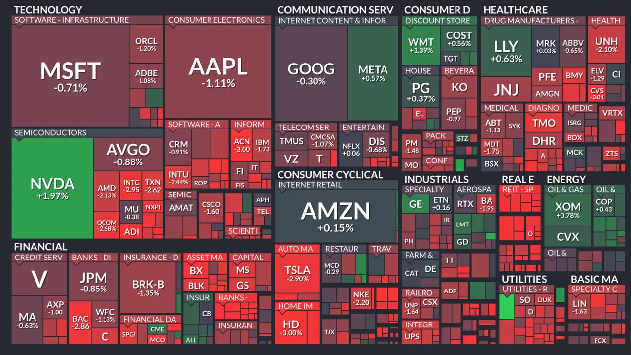 - S&P500 주요 섹터 중 부동산이 4% 넘게 하락하며 2022년 6월 이후 가장 큰 일일 낙폭을 기록. 퍼블릭스토리지(-6.0%), 아메리칸타워(-5.6%), 사이먼 프로퍼티(-3.1%) 등이 하락을 주도.