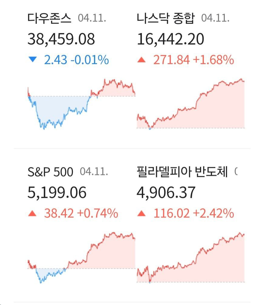 - 4/12 미 증시, 물가 우려 잠재운 ‘AI효과’에 상승