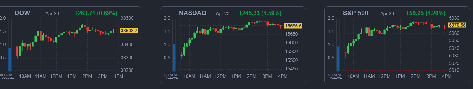 - 다우지수 0.7% 상승, S&P 500 1.2% 상승, 나스닥 1.6% 상승마감 -
