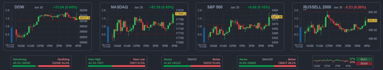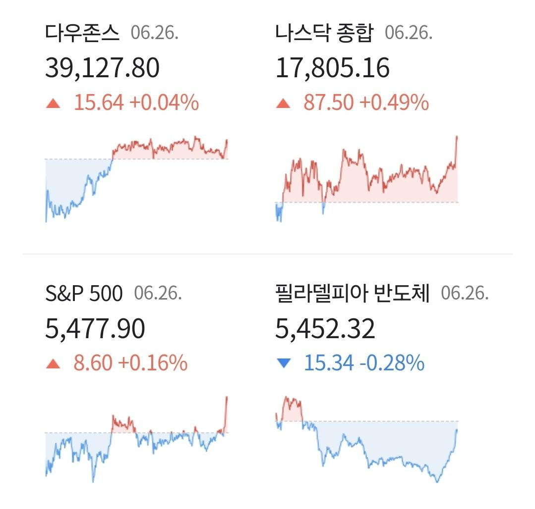- 06/27 미 증시, 달러 강세와 금리 상승에도 대형 기술주 강세로 상승 마감