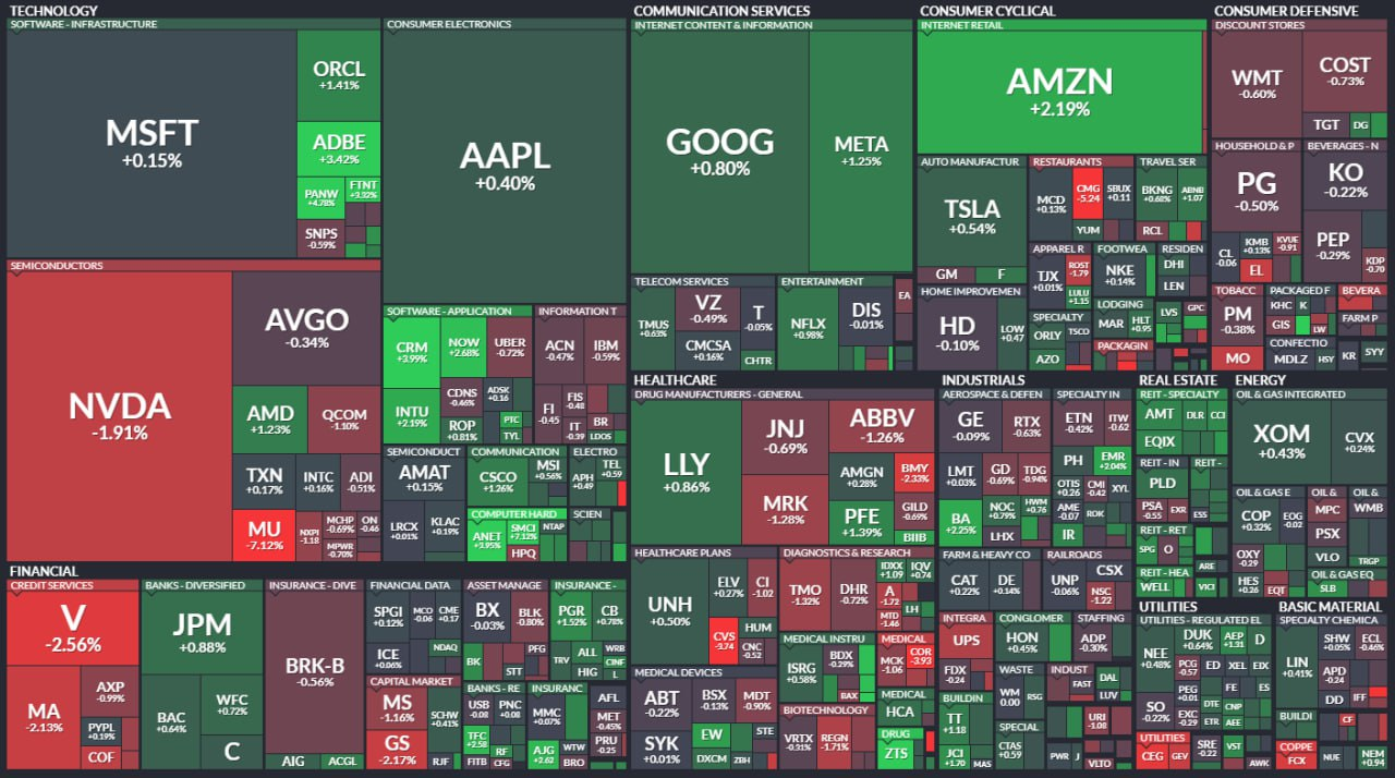 - 칩 제조업체 마이크론은 실망스러운 4분기 실적 전망 발표에 7% 이상 하락.