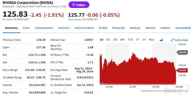 월가의 투자사가 엔비디아 주가가 고평가돼 있다며 투자 등급을 하향하자 엔비디아 주가가 2% 가까이 하락했다. 5일(현지시간) 뉴욕증시에서 엔비디아는 전거래일보다 1.91% 하락한 125.83달러를