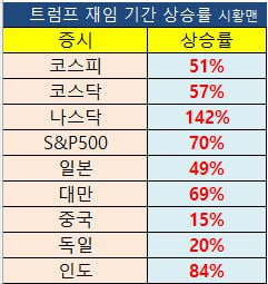 트럼프 재임 기간 주요국 증시 상승률.