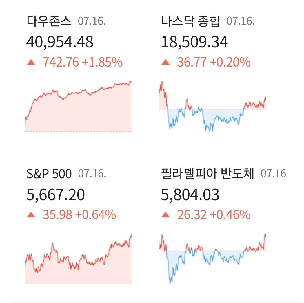 - 금리 인하 기대감으로 인한 중소형주 랠리로 3대 지수 상승마감(07/16/24)