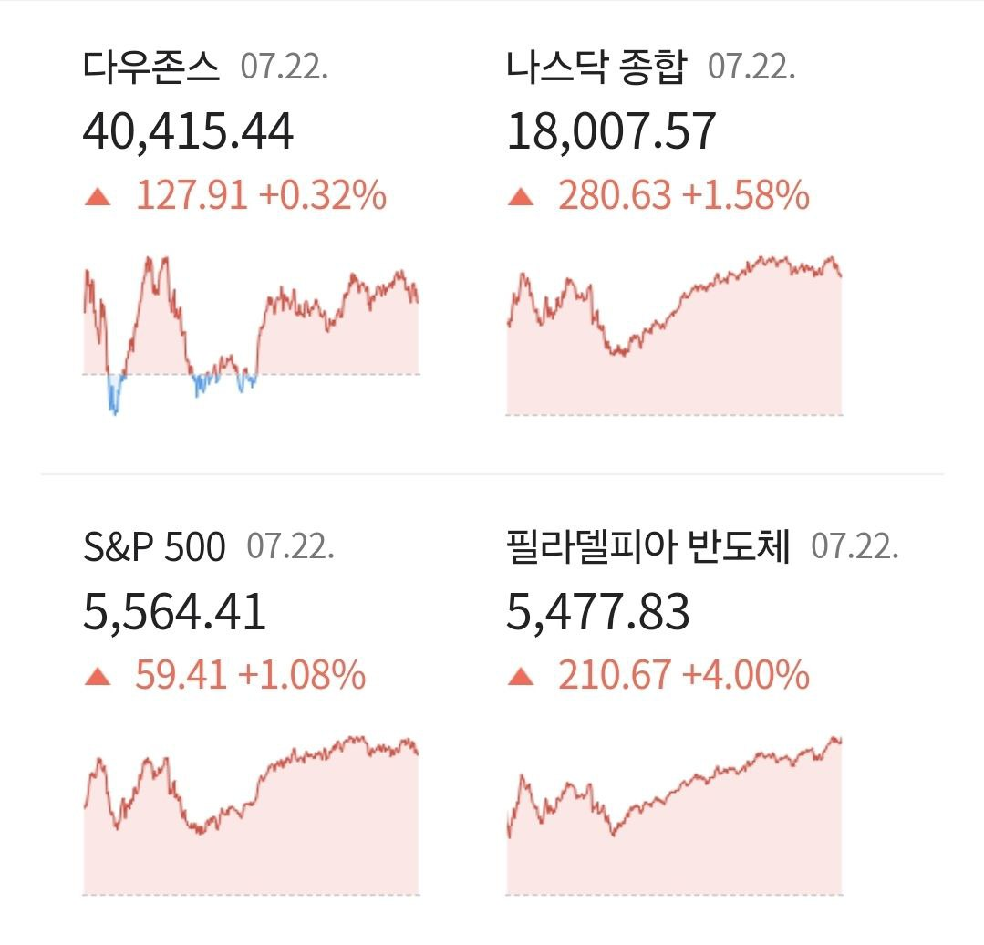 • 바이든 후보사퇴 쇼크 없었다…반도체주 상승에 S&P500 1.08%↑