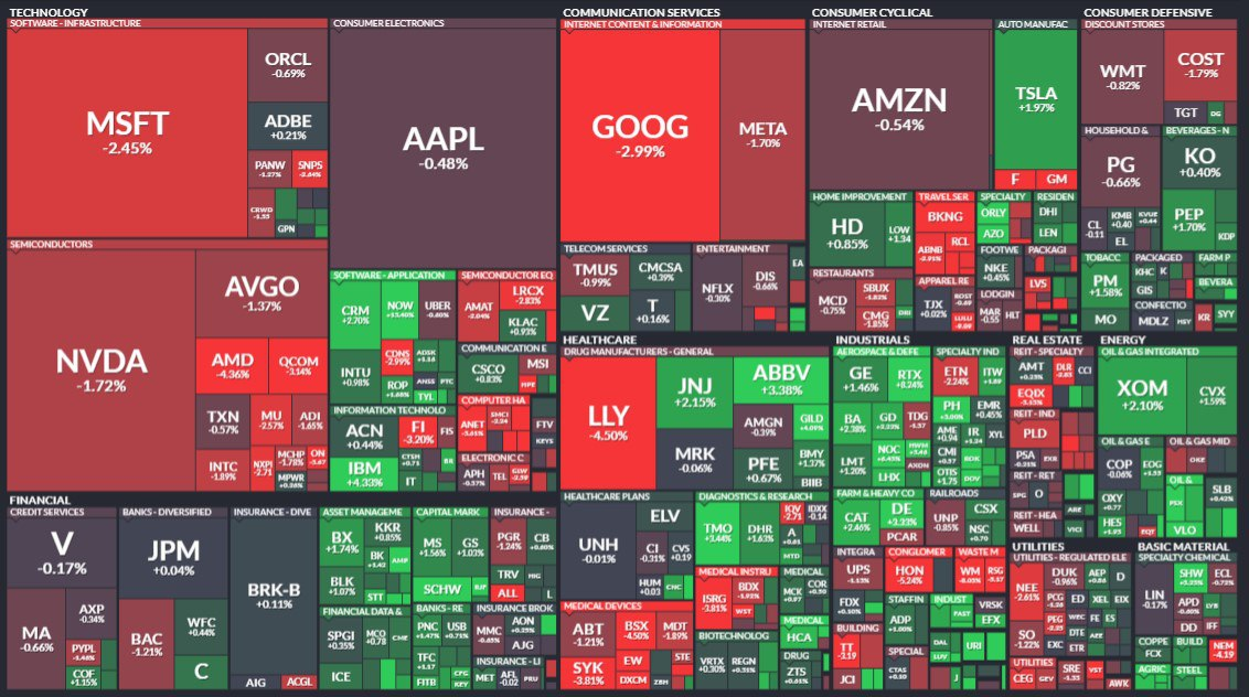 - 애플(-0.48%), 메타 플랫폼스(-1.70%), 알파벳A(-3.10%) 추가적인 하락세를 보임.