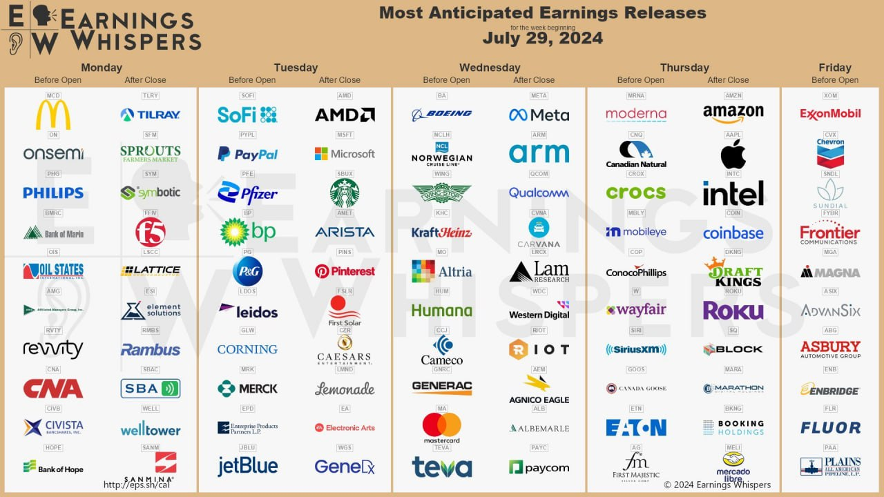 - 이번 주에는 애플, 마이크로소프트, 아마존, 메타 플랫폼스가 실적을 발표한다.