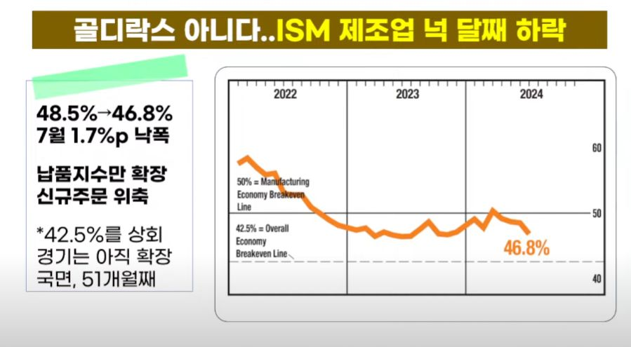 - 7월 ISM 제조업지수는 46.8. 예상 48.8 큰 폭 하회