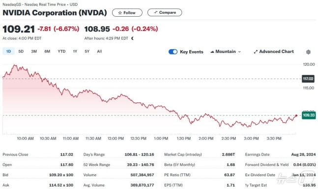 - [뉴욕증시] 급등 하루 만에 폭락...엔비디아, 6.7%↓