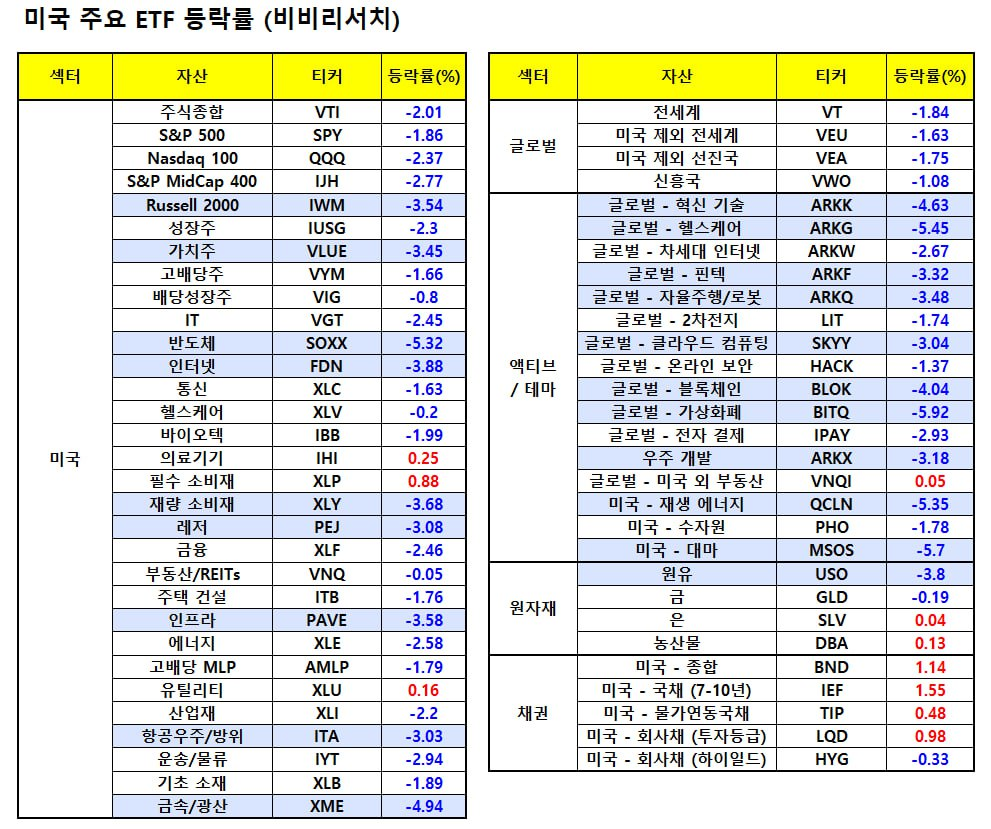 - 금리인하 전망 불구 러셀2000도 큰 폭 하락