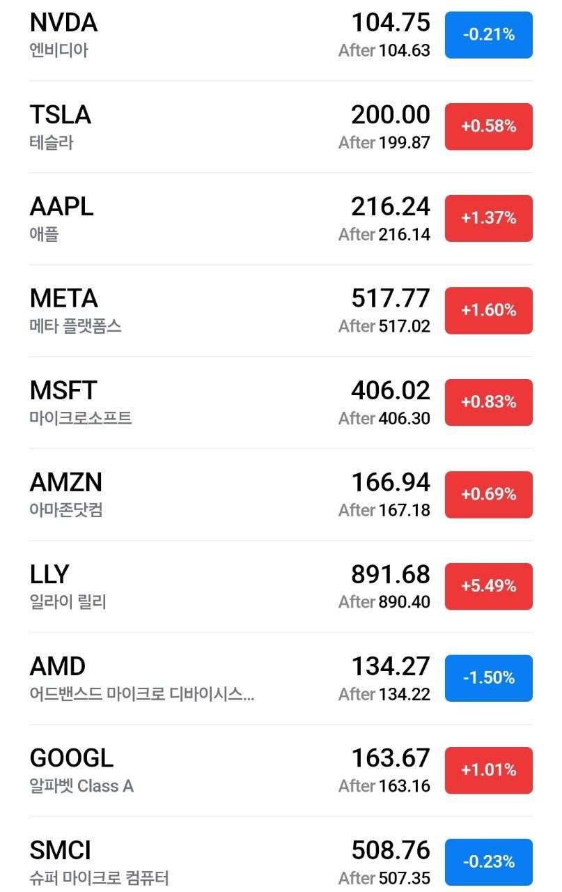 - 애플 1.37%, 메타 1.6%, 특히 일라이릴리 5.49%