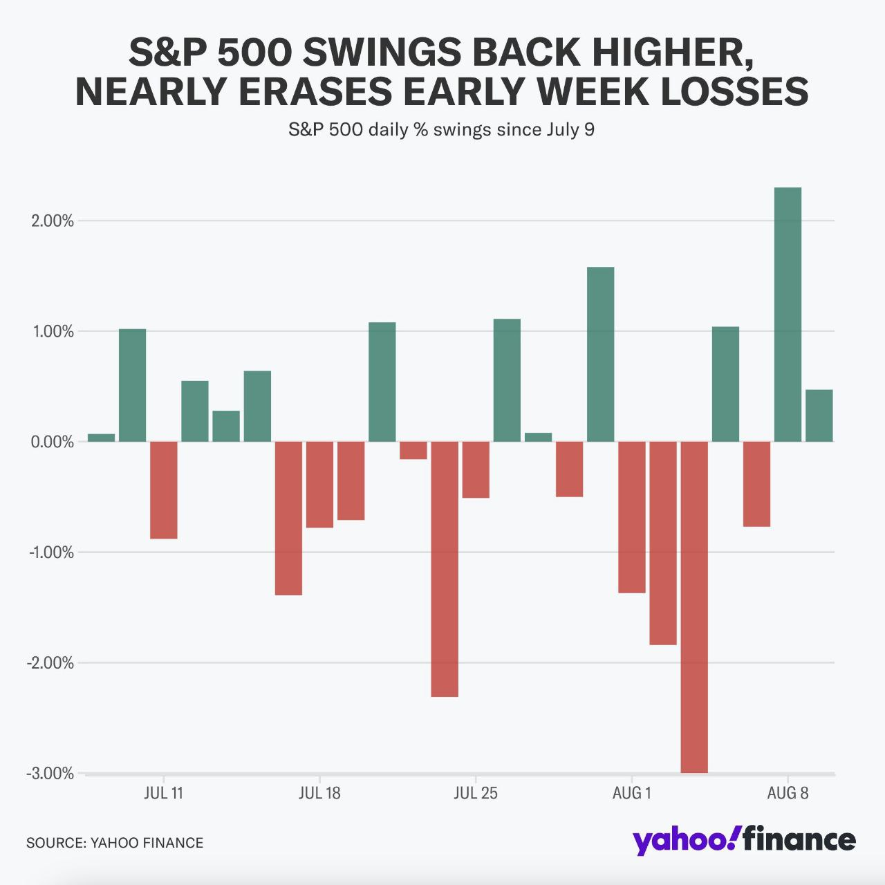 - 미국증시는 월요일 격렬한 폭락에서 놀라운 회복을 보이며 주간 손실을 거의 회복하는 수준으로 마감.