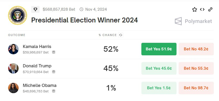 - 해리스, 트럼프 추월… “대선 당선 확률 50%”–폴리마켓 베팅도 상황 급변