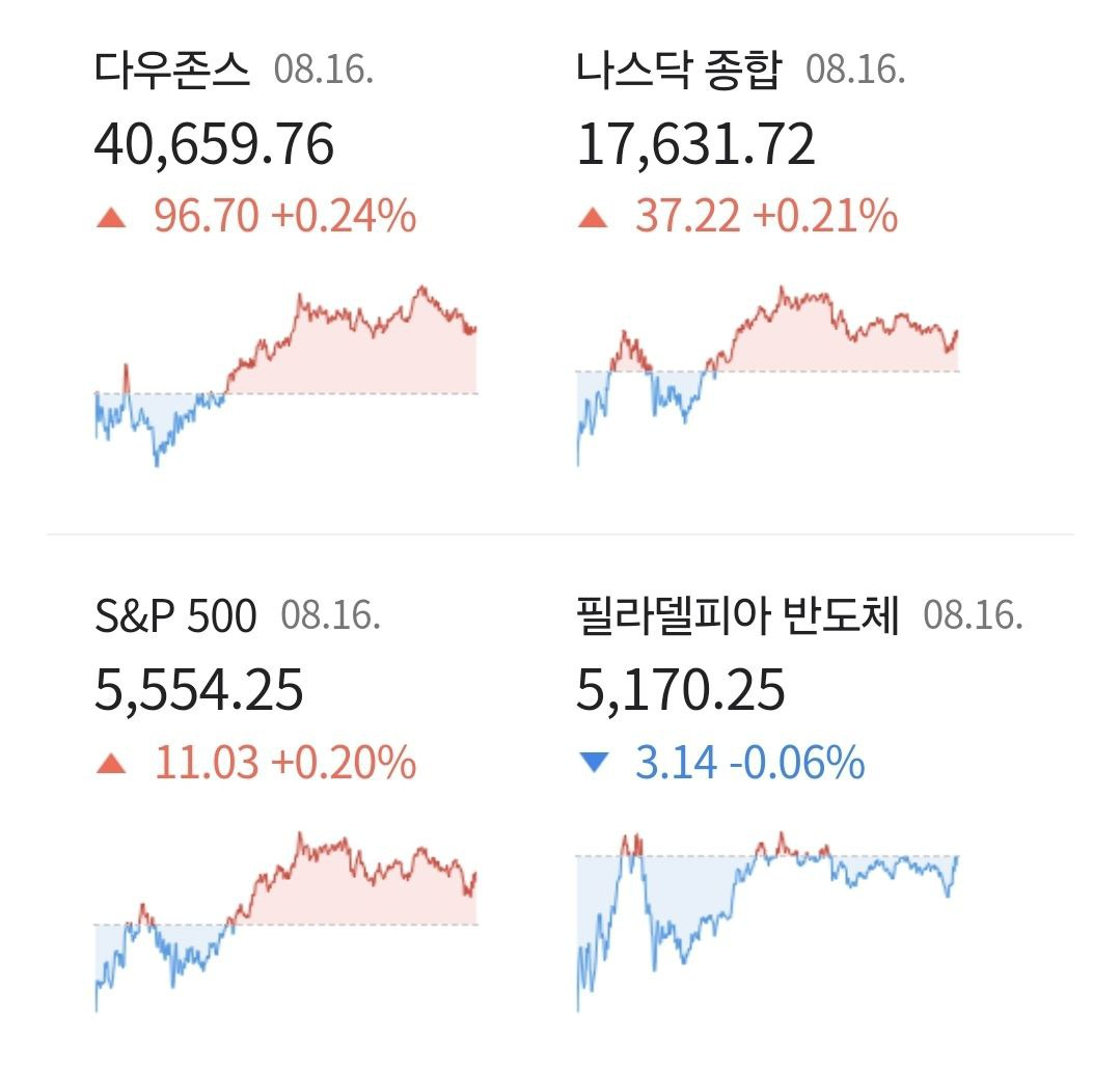 - 08/19 미 증시, 차익 매물과 옵션 만기 기반 개별 종목에 주목하며 소폭 상승