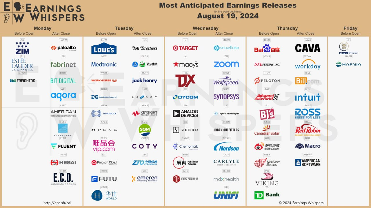 타겟, 티제이맥스 컴퍼니, 아날로그 디바이시스, 레이먼드 제임스 파이낸셜 - -8월 22일