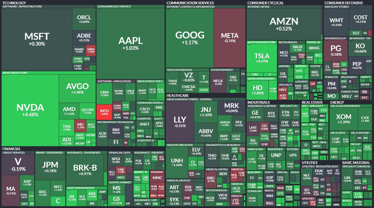 - 애플 01.0%, 엔비디아 4.5%, 마이크로소프트 0.3%, 아마존닷컴 0.5% 상승