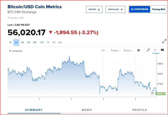 - [뉴욕 코인시황/마감] 美고용보고서 앞두고 경기침체 우려로 반등 무산 … 비트코인 $56K 부