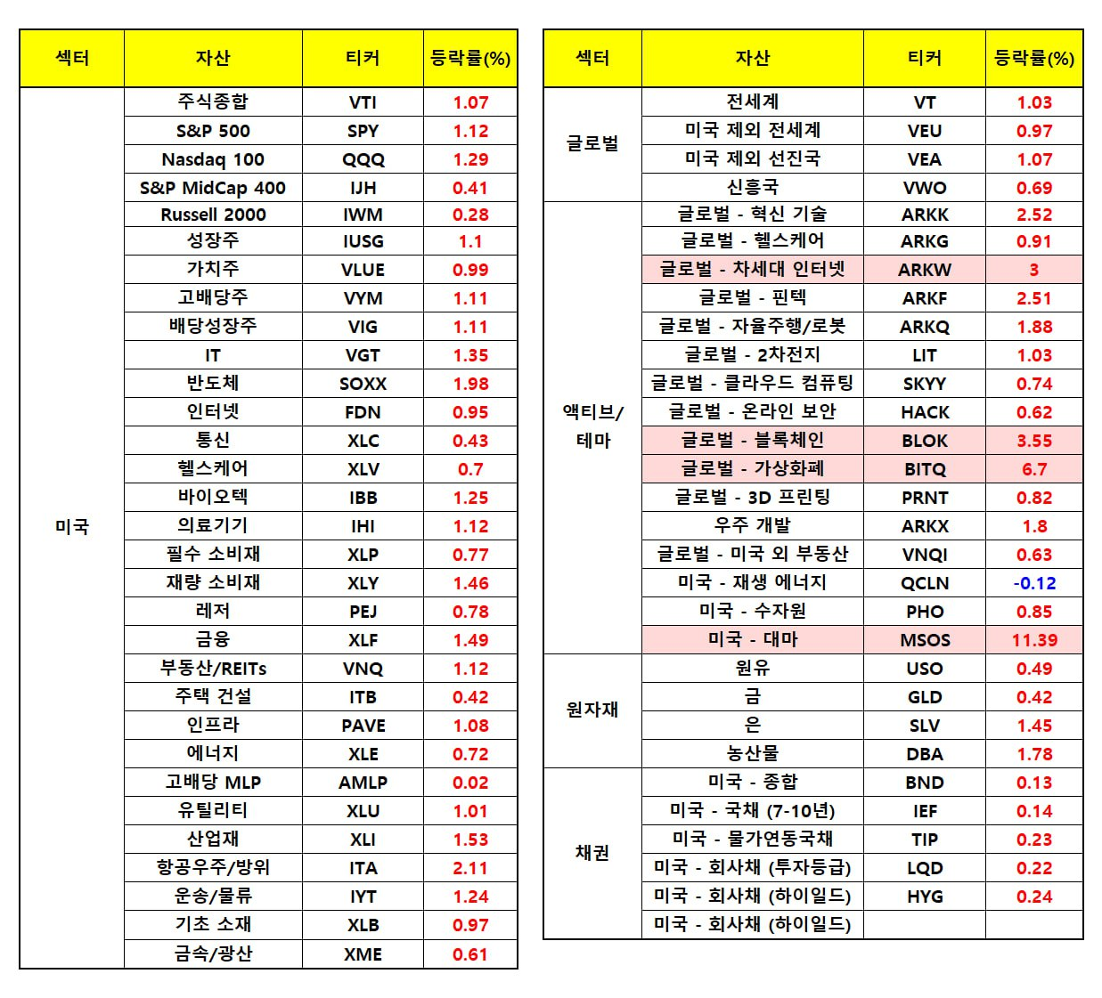 - 테슬라 4.5%, 아마존과 MS 2%, 엔비디아 1.5%