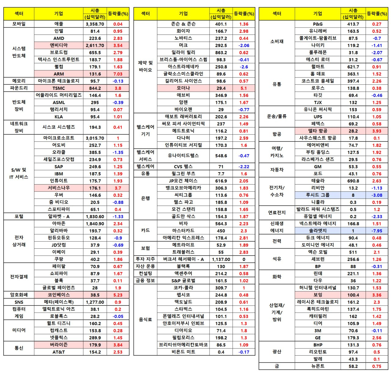 - AMD(+3.39%)는 HSBC가 AI 기반 상당한 상승 잠재력이 있다고 언급하자 강세.
