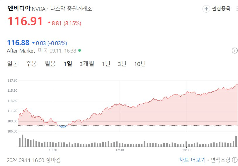 - 09/12 나스닥, 대선 토론과 물가 불안에도 불구하고 엔비디아의 힘으로 상승 전환 후 급등
