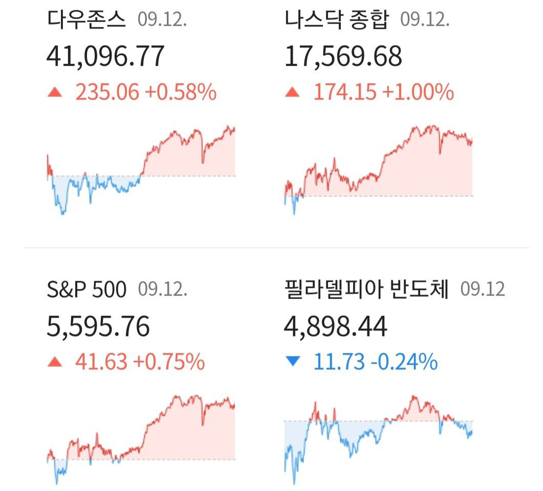 - 09/13 미 증시, 물가 지표 소화한 후 상승 편향에 힘입어 상승 지속