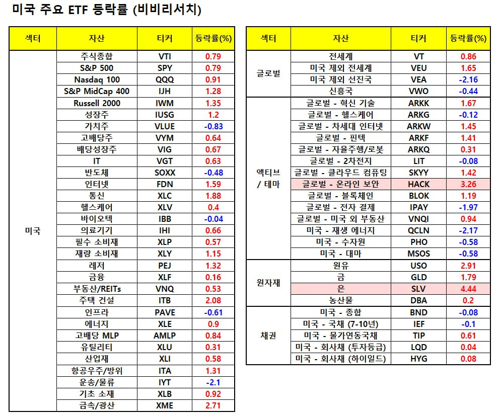 - 알파벳(+2.23%)은 전일 온라인 광고 사업에서 경쟁 업체들을 압도하고 있다는 전 구글 임원의 언급에 상승 지속.