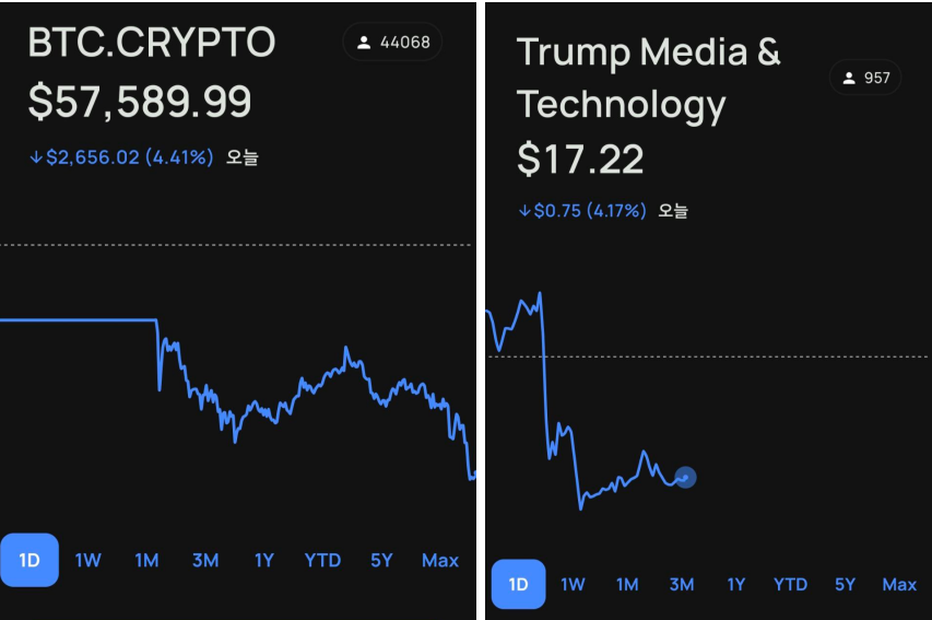 - 관련해서 트럼프 미디어 주가도 급락 중