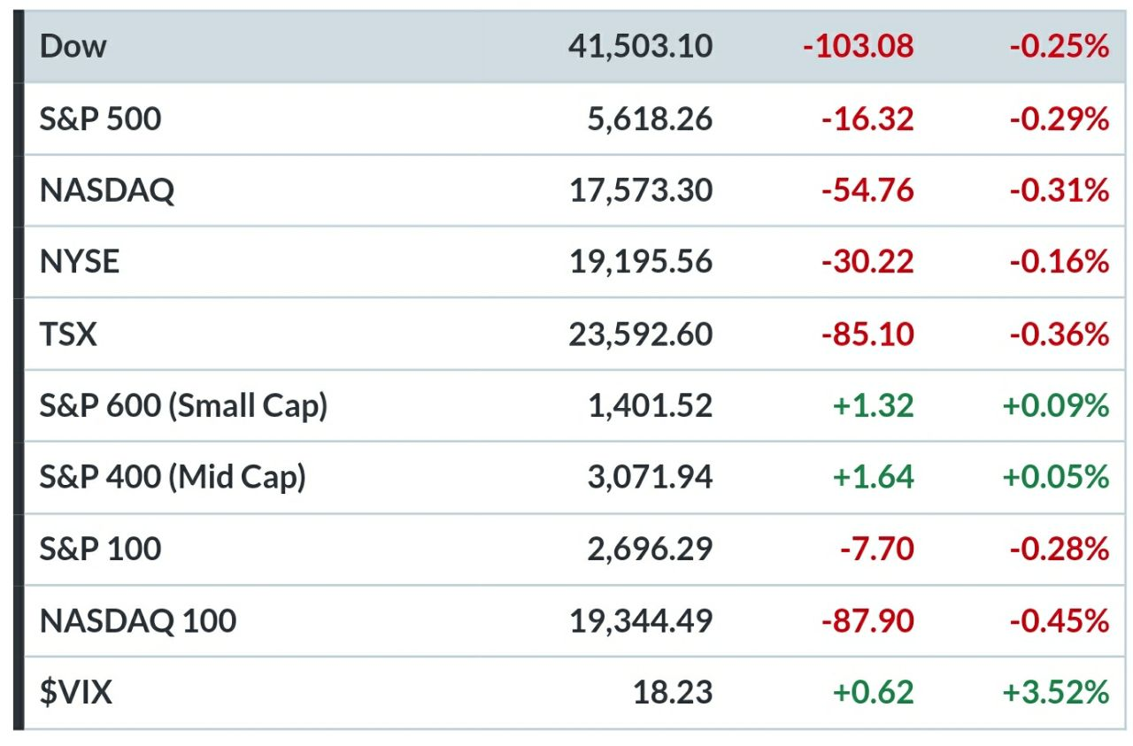- S&P500 ▼ 5,618.26 (-0.3%)