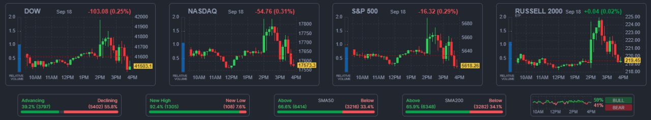- 09/19 미 증시, 50bp 금리 인하한 FOMC 후 변동성 확대되며 하락 마감