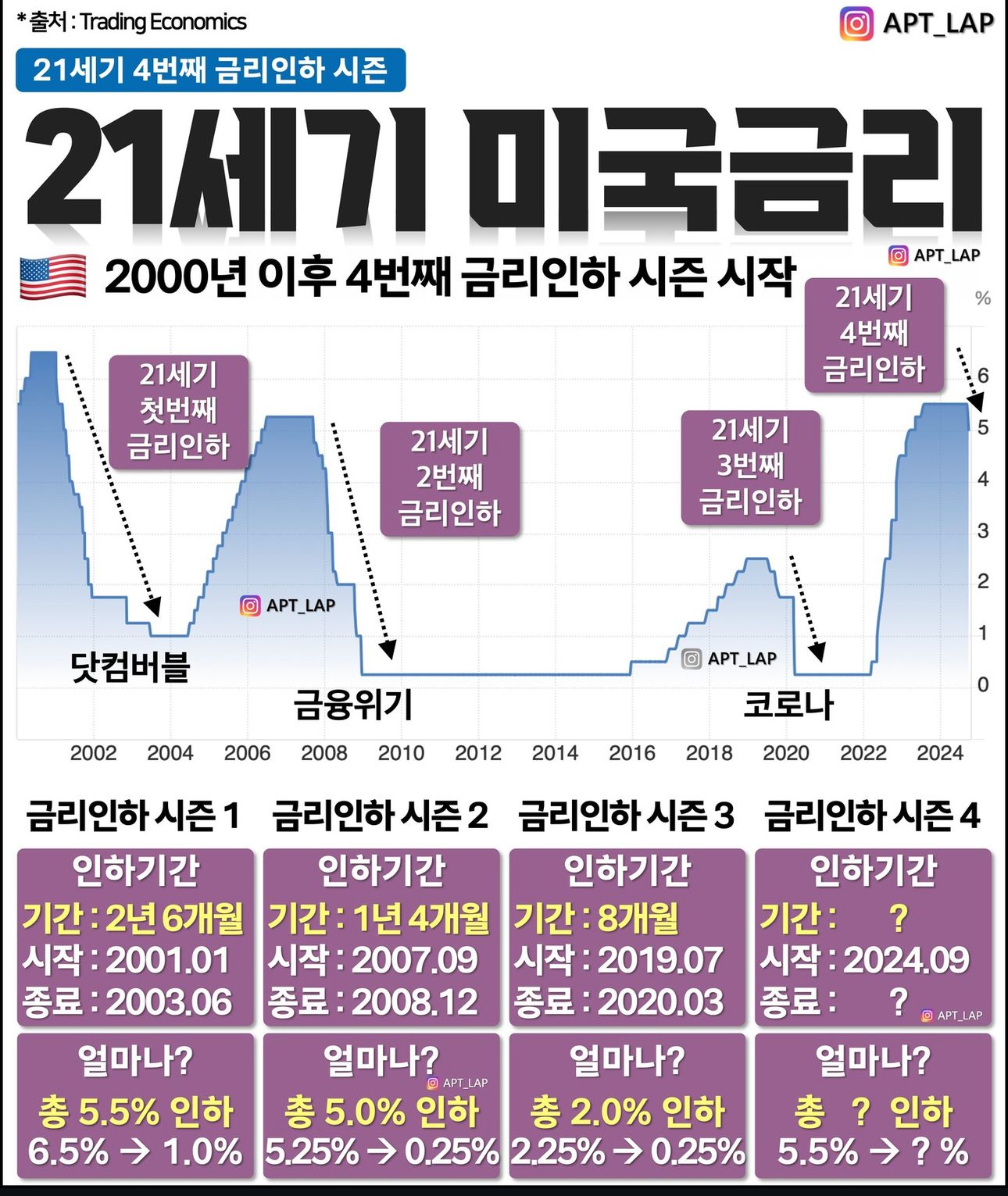 - 2001년 10월, 11월에는 9.11 여파로 단행. 그 외 2002년 11월에는 지정학적 리스크, 20007년 9월, 2008년 10월 모두 금융위기 등에 의한 결과. 때문에 연준의 금번 50bp 인하에 대해서도 시장은 의구심을 표명.
