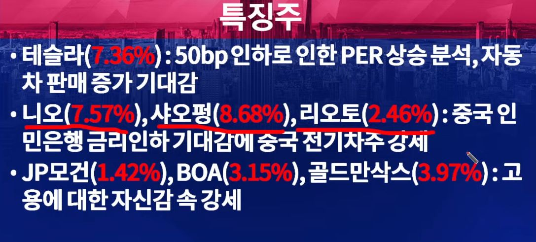 - 한편, 니오(+7.57%), 샤오펑(+8.68%), 리오토(+2.46%) 등의 중국 전기차가 급등했는데 이는 중국 인민은행의 금리인하 기대 심리를 반영한 것.
