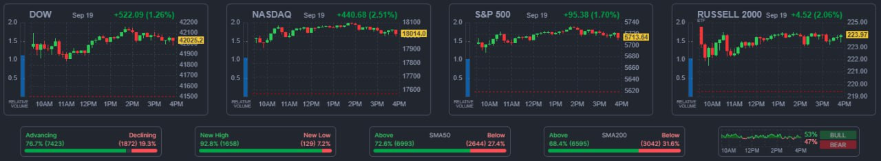 - 09/20 미 증시, 50bp 인하와 개선된 경제지표로 기대 심리 유입되며 상승
