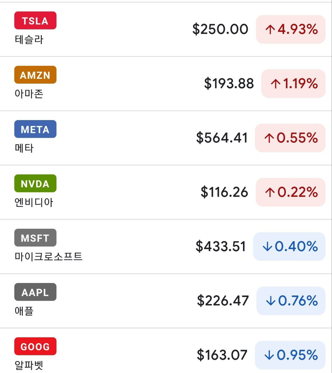 - 특징 종목: 테슬라, 인텔, 중국 기업들 강세
