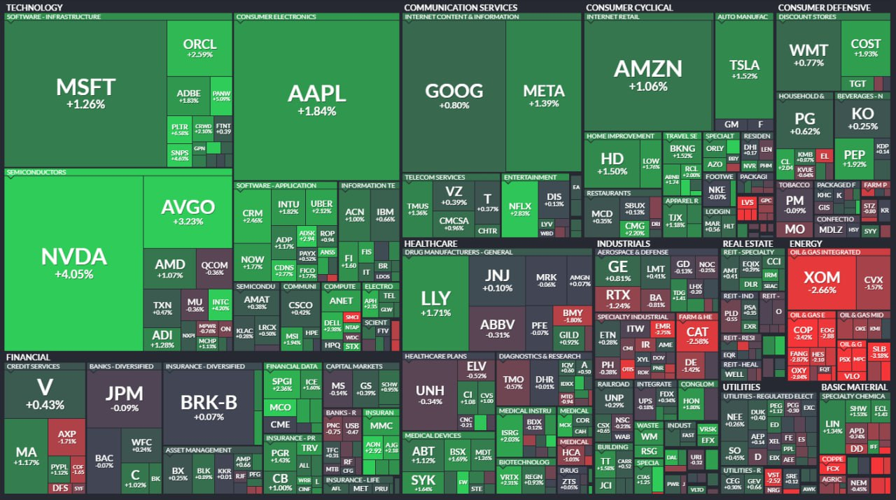 - 엔비디아 4%, 브로드컴 3.2%, 애플 1.8% 등