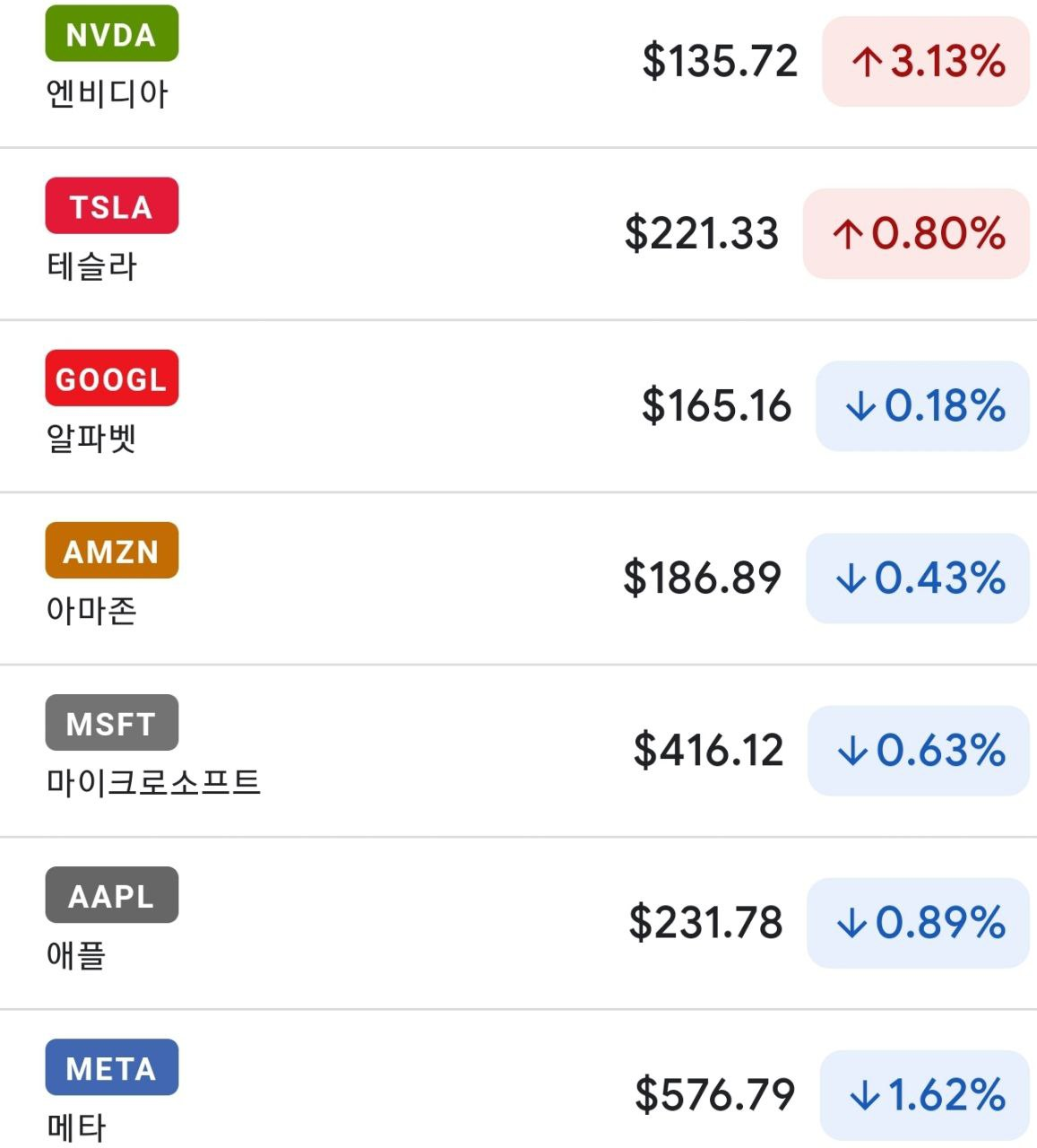- 알파벳(-0.10%)도 약세를 보였지만, 광고 수익에 대한 기대로 하락은 제한.