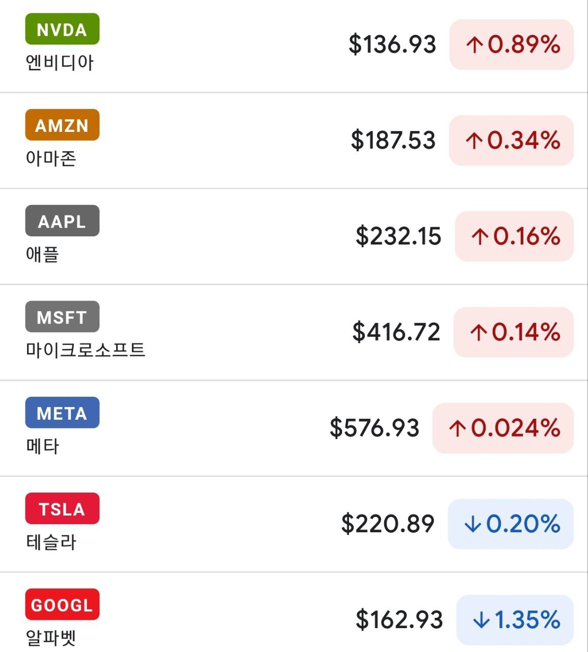 - 알파벳(-0.10%)도 약세를 보였지만, 광고 수익에 대한 기대로 하락은 제한.
