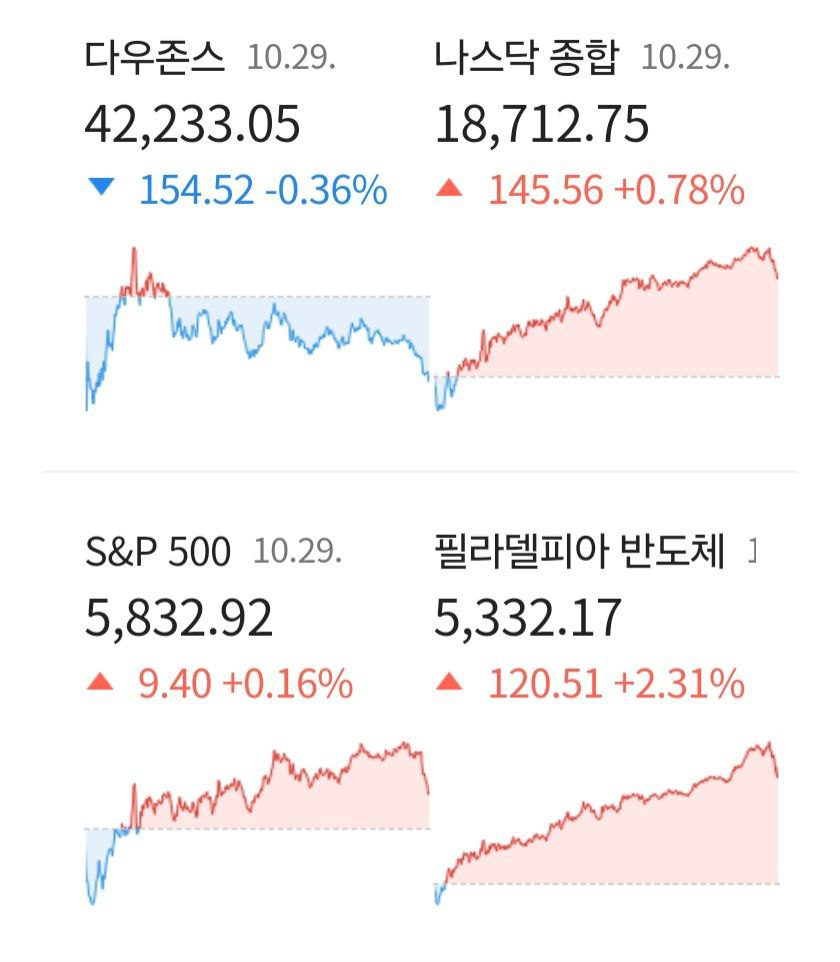 - 10/30 미 증시, 달러, 금리 변화 속 AMD, 알파벳 실적 발표 앞두고 나스닥 중심으로 상승