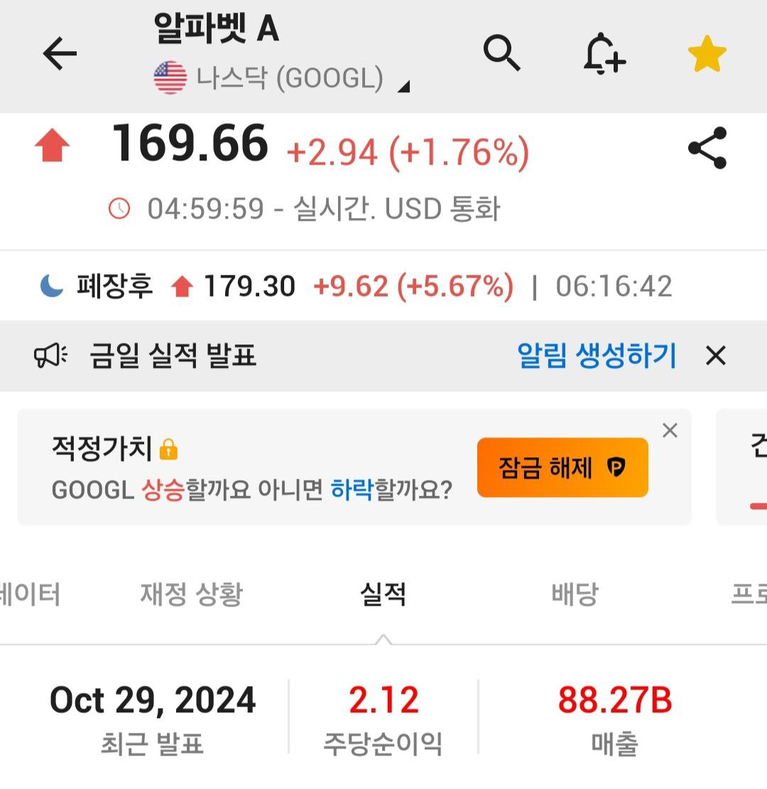 - 알파벳은 장 마감 후 클라우드 수익이 35% 급증하며 예상을 상회한 실적과 광고 매출, 자본 지출, 마진율 등을 발표하자 시간 외 3% 내외 상승 중.