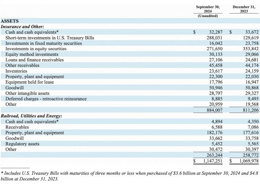 - 버크셔의 현금 보유고는 2분기 $276.9B에서 3분기 말 $325.2B로 사상 최고치를 기록했다.