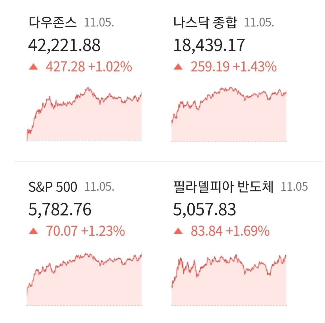 11월 6일 시황. 누가 되든 어차피 오른다는 미 증시