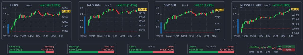 - - 엔비디아(NVDA) 주가는 선거결과와는 관계없이 3% 가까이 상승.