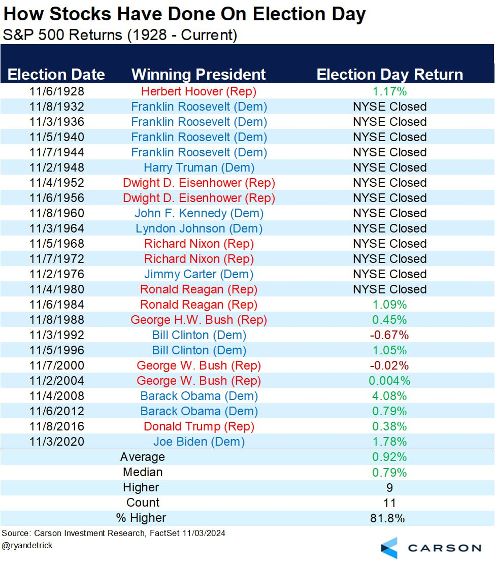 - 미 증시는 전통적으로 대선 당일 상승하는 경향