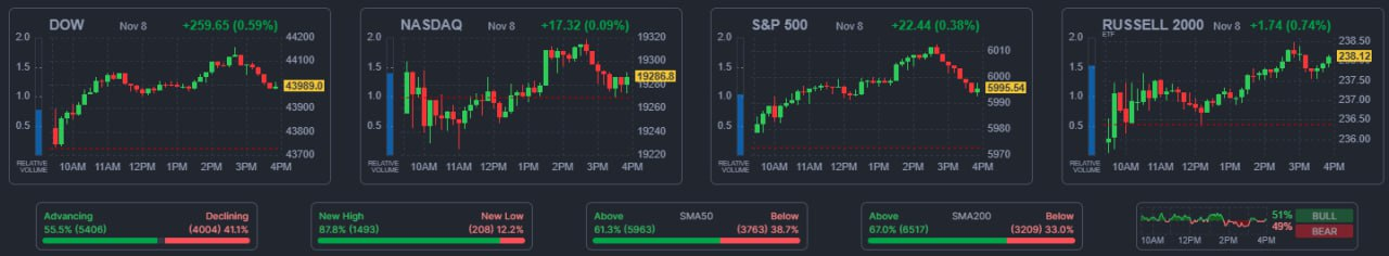 - - 대선, FOMC 종료로 불확실성 제거되며 3대 지수 + 러셀 2000 큰 폭으로 랠리.