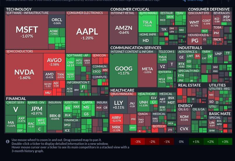 - 애브비(-12.57%)는 조현병 2상 임상 시험에서 주요 목표 달성에 실패했다는 소식에 급락.